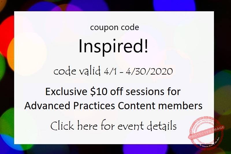 This month’s coupon is an exclusive $10 off sessions coupon for Advanced Practices Group