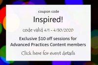![]() This month's coupon is an exclusive $10 off sessions coupon for Advanced Practices Group |